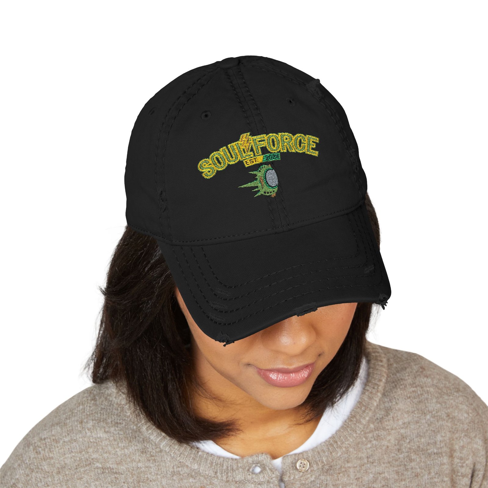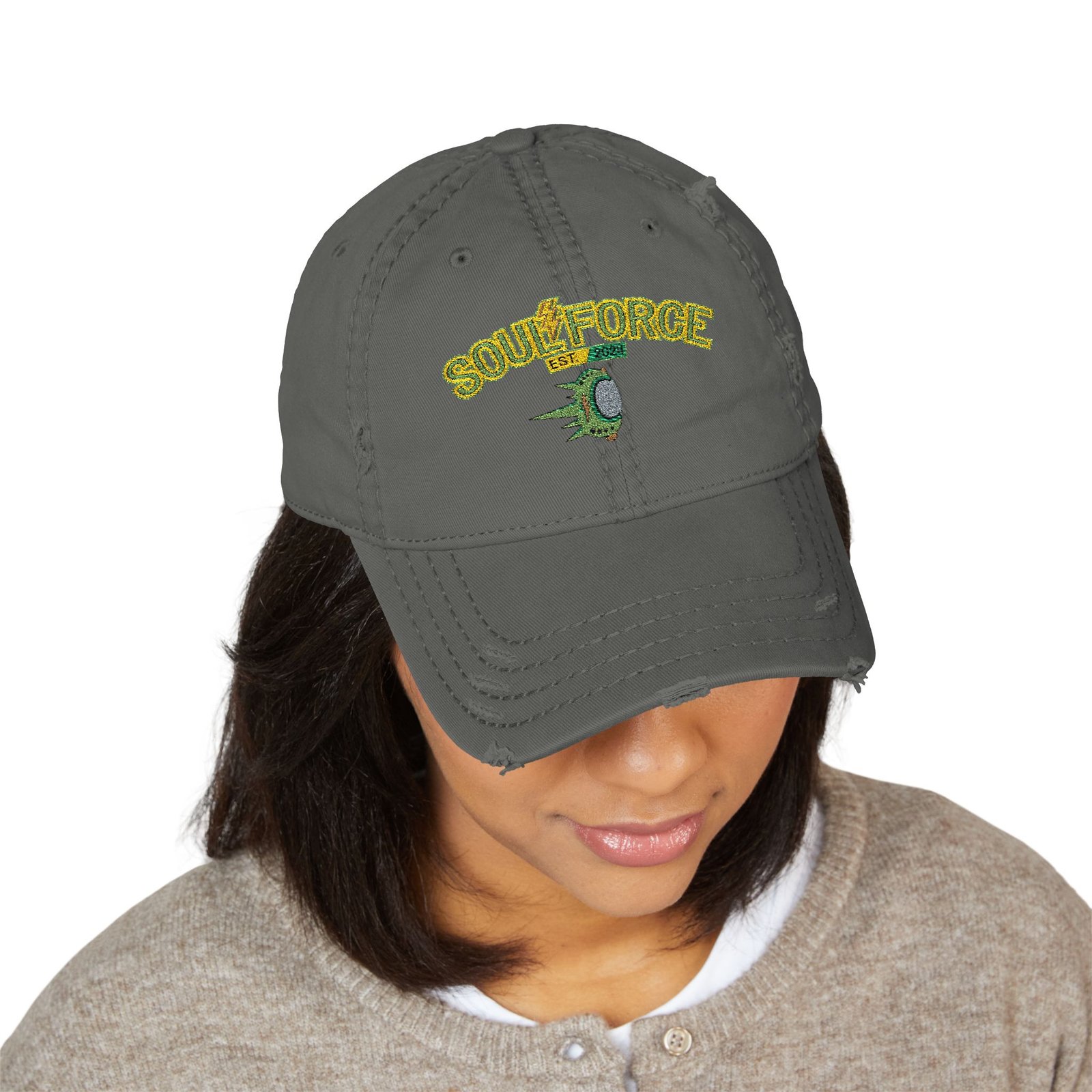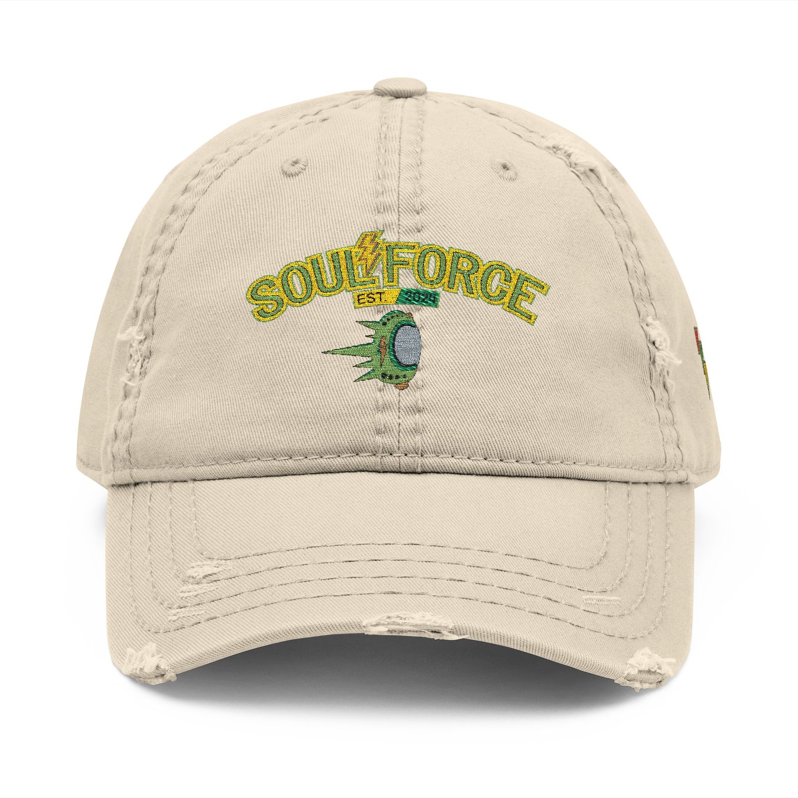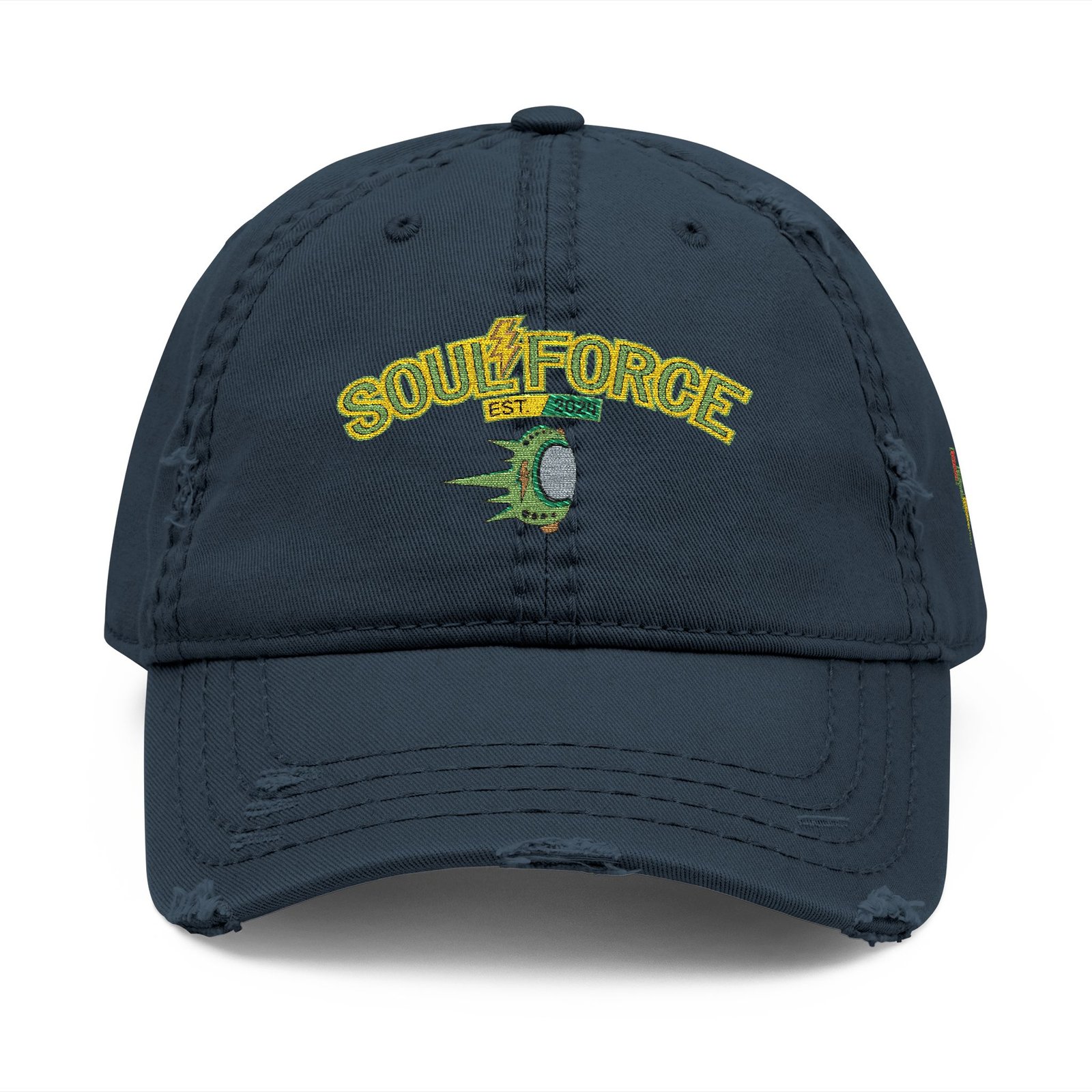 Distressed Dad Hat with Soulforce Embroidery, Casual Cap for Outdoor Adventures, Gift for Dads, Birthdays, Summer Fashion, Relaxed Fit Hat